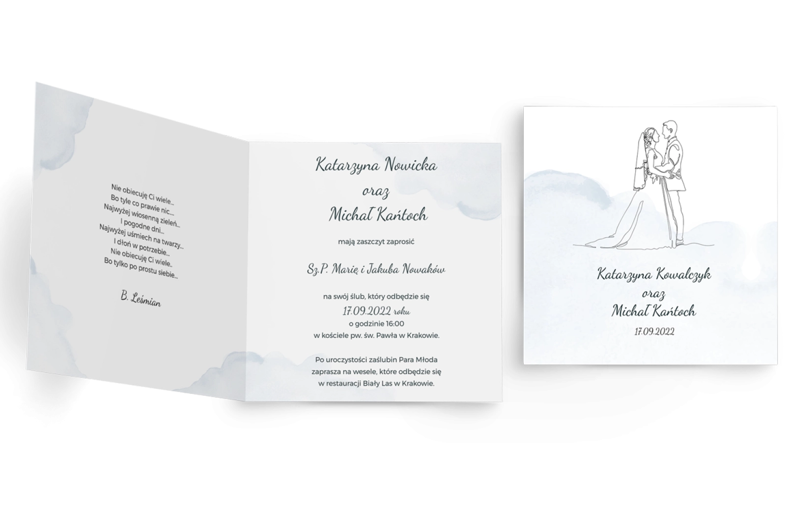 Zaproszenia ślubne True Love - Składane Kwadrat Motyw 3