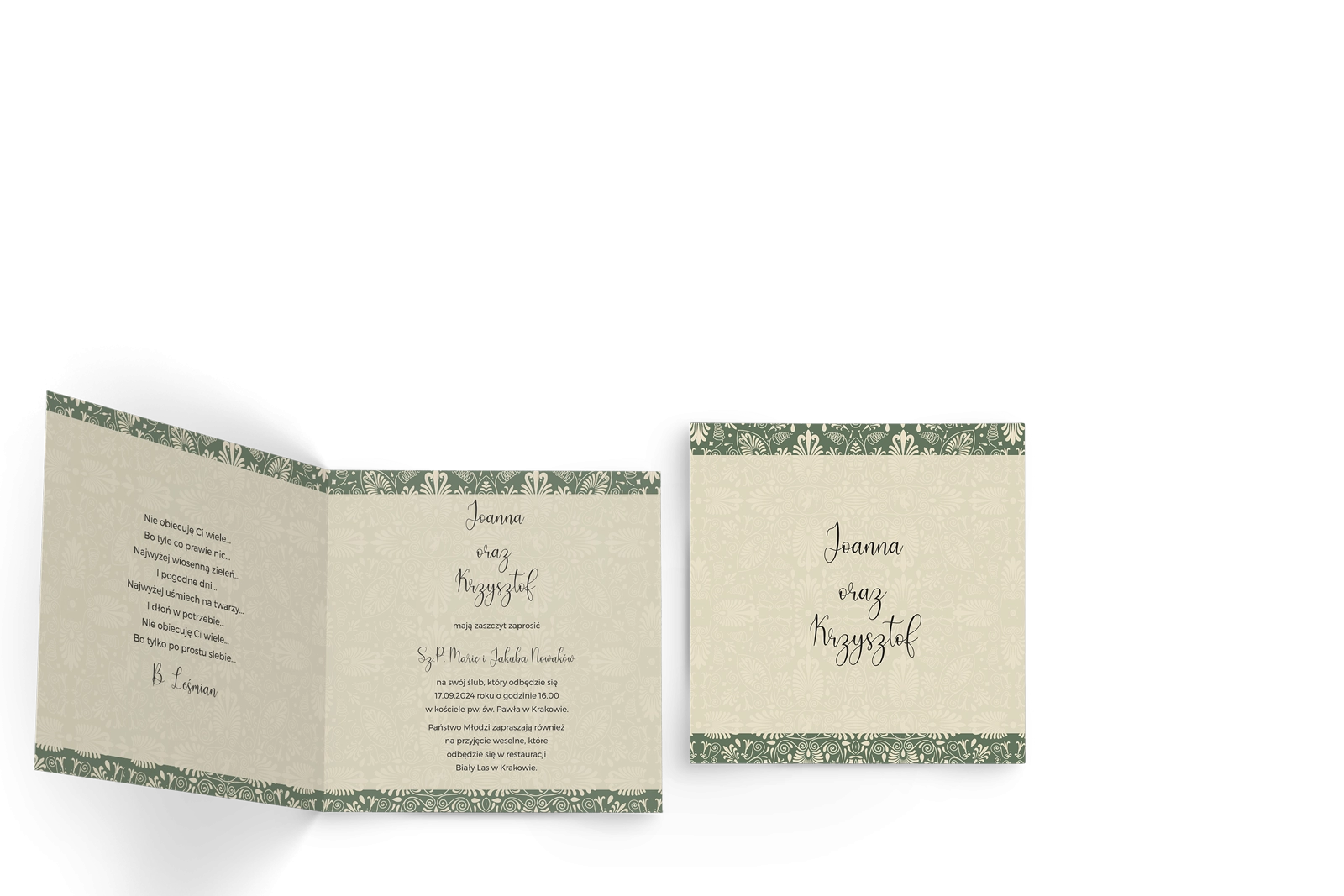 Zaproszenia ślubne Vintage - Składane Kwadrat Motyw 2