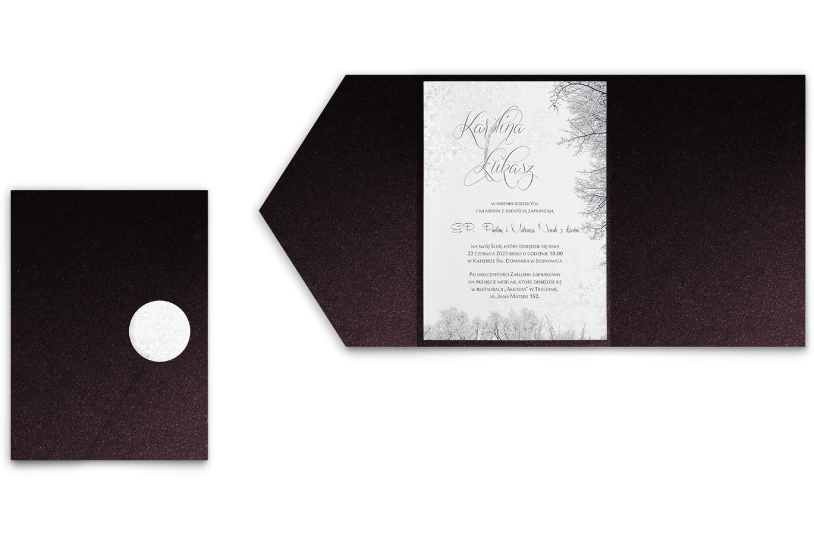 Rozmiar zaproszenia z papierem ozdobnym 150x288 mm (+- 2mm)