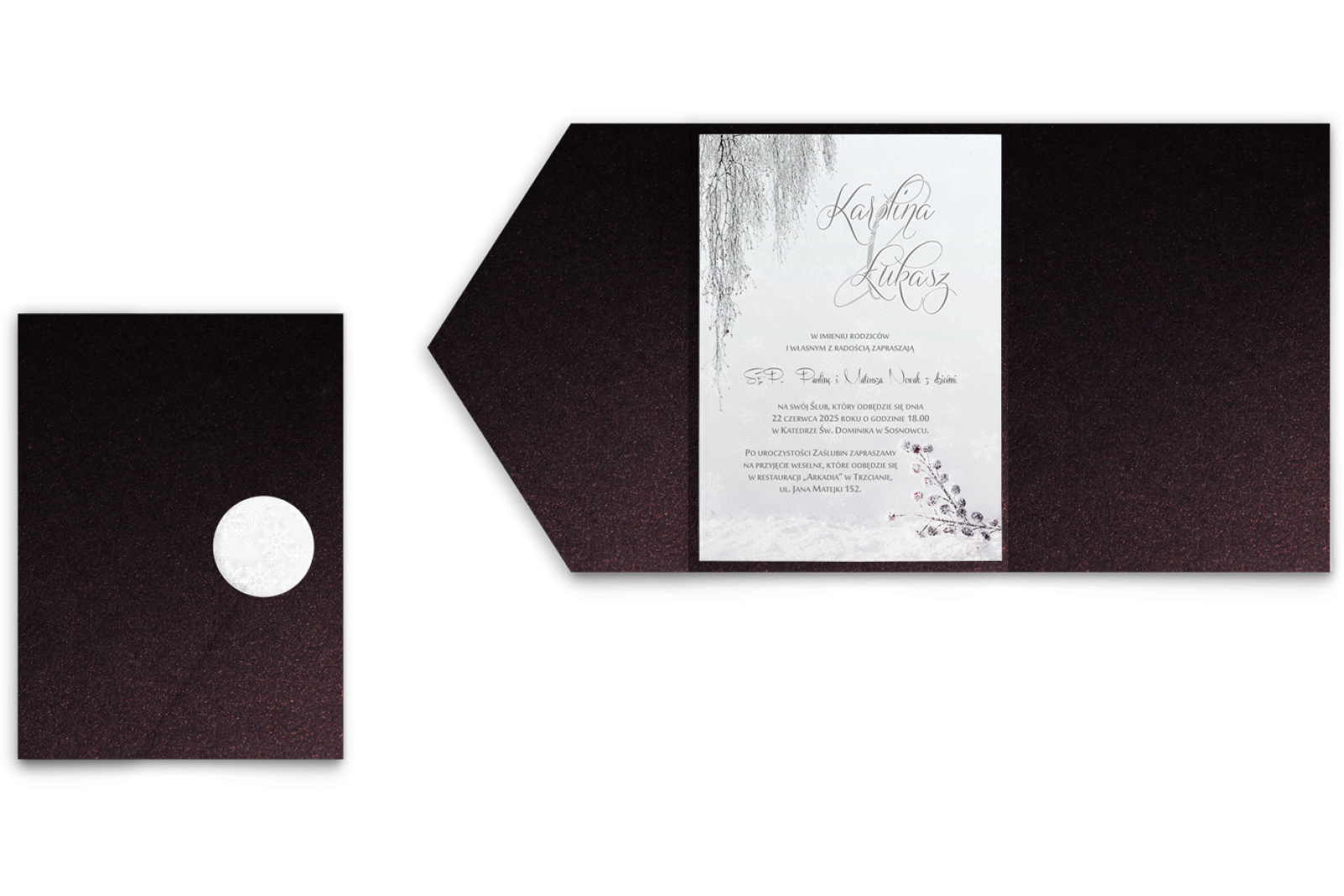Rozmiar zaproszenia z papierem ozdobnym 150x288 mm (+- 2mm)