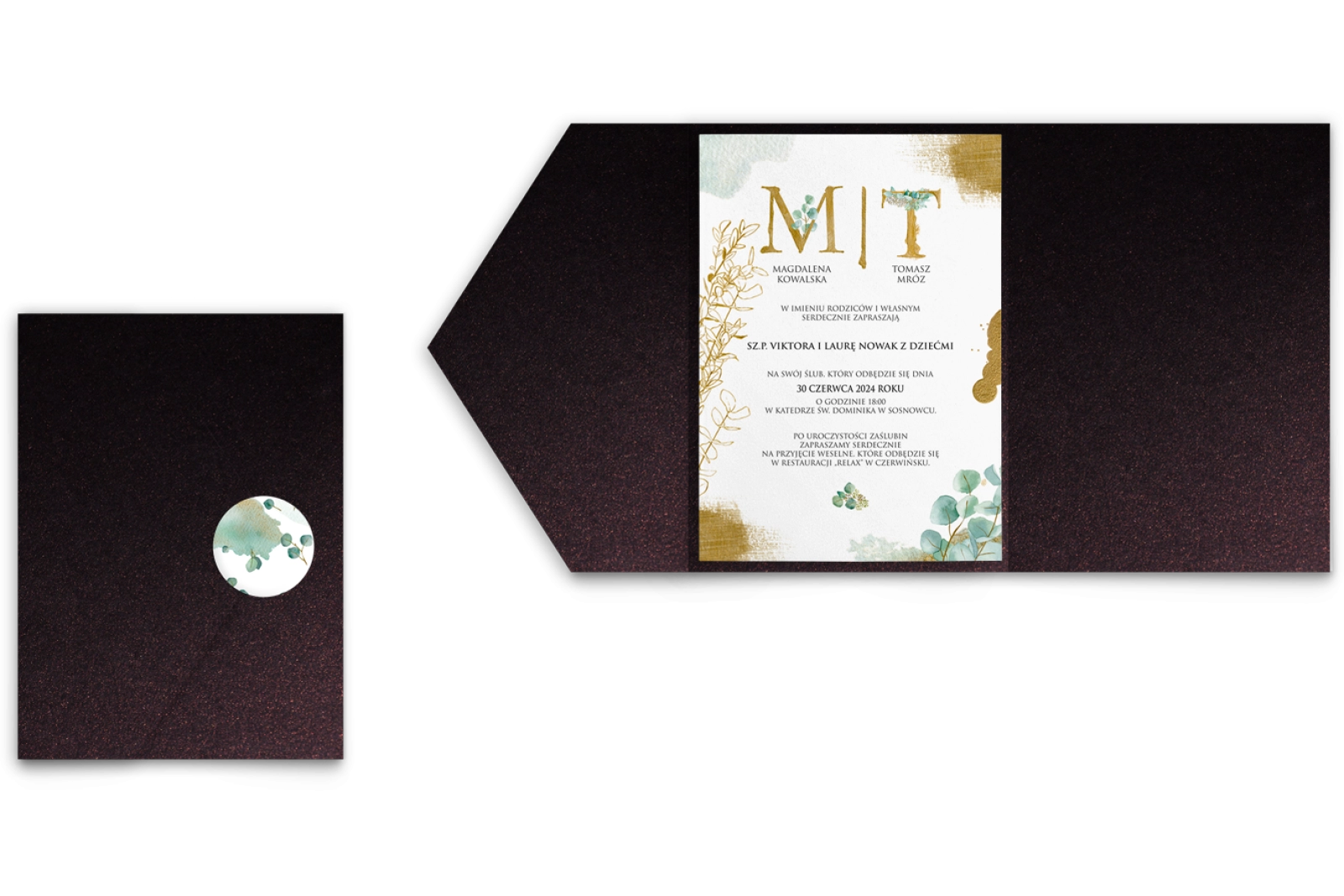 Zaproszenia ślubne w etui Golden Green - motyw 2