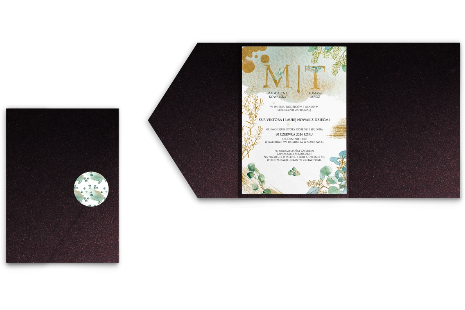 Zaproszenia ślubne w etui Golden Green - motyw 3
