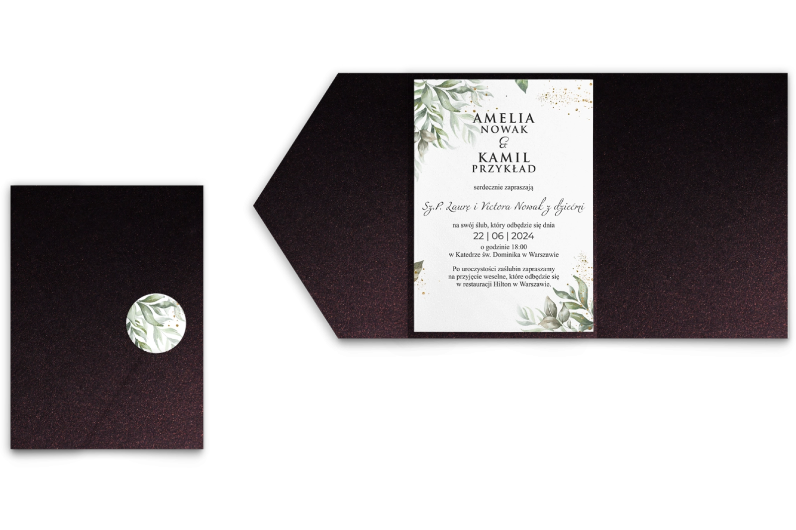 Zaproszenia ślubne w Etui Leaves - Motyw 1