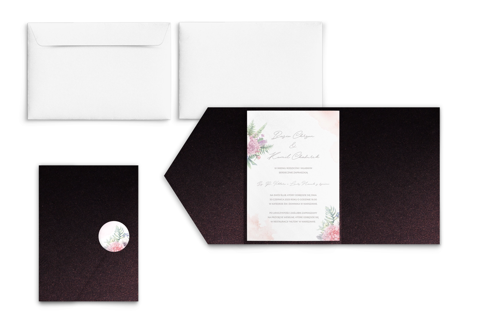 Rozmiar zaproszenia z papierem ozdobnym | 150x288 mm (+- 2mm) |