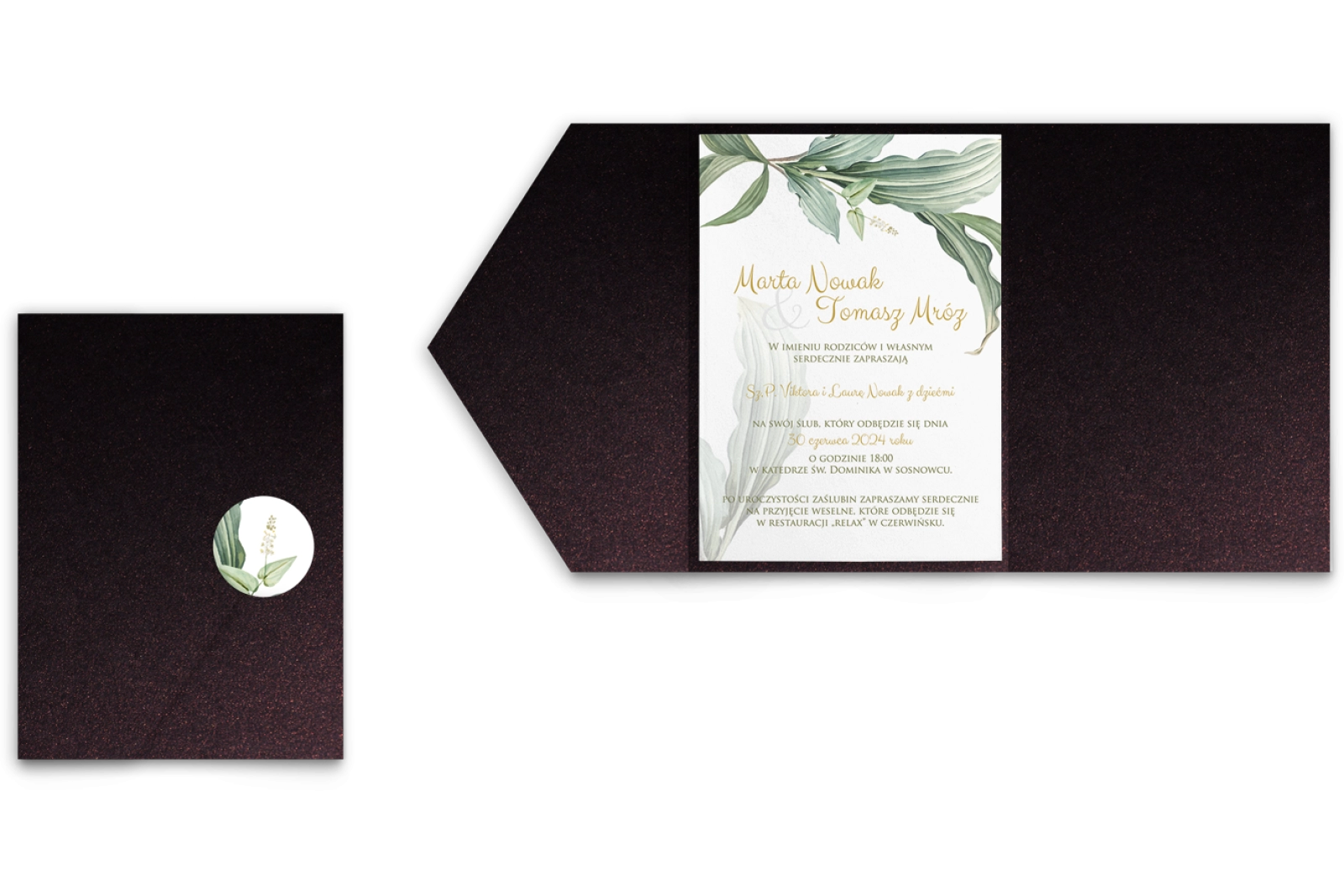 Zaproszenia ślubne w etui Liscie- motyw 3