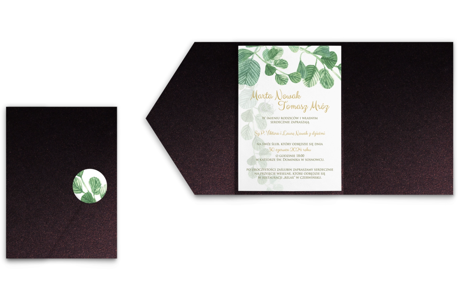 Zaproszenia ślubne w etui Liscie- motyw 6