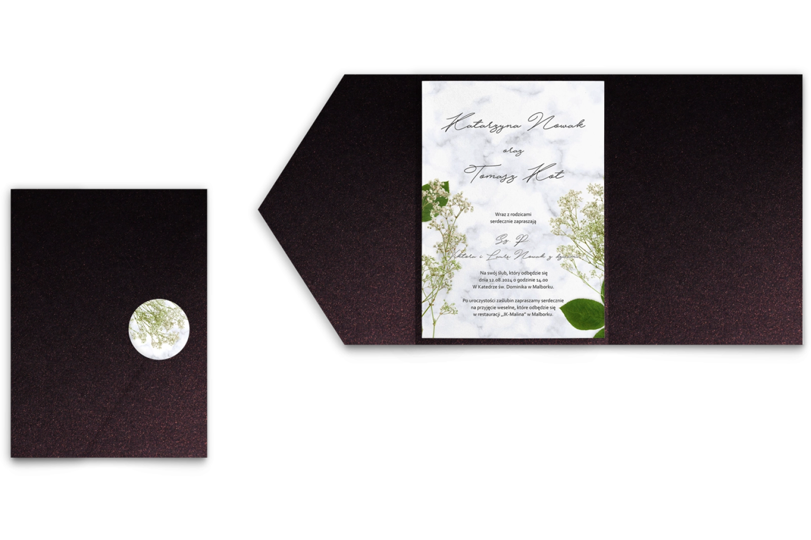 Zaproszenia ślubne w etui Marble leaf - motyw 3