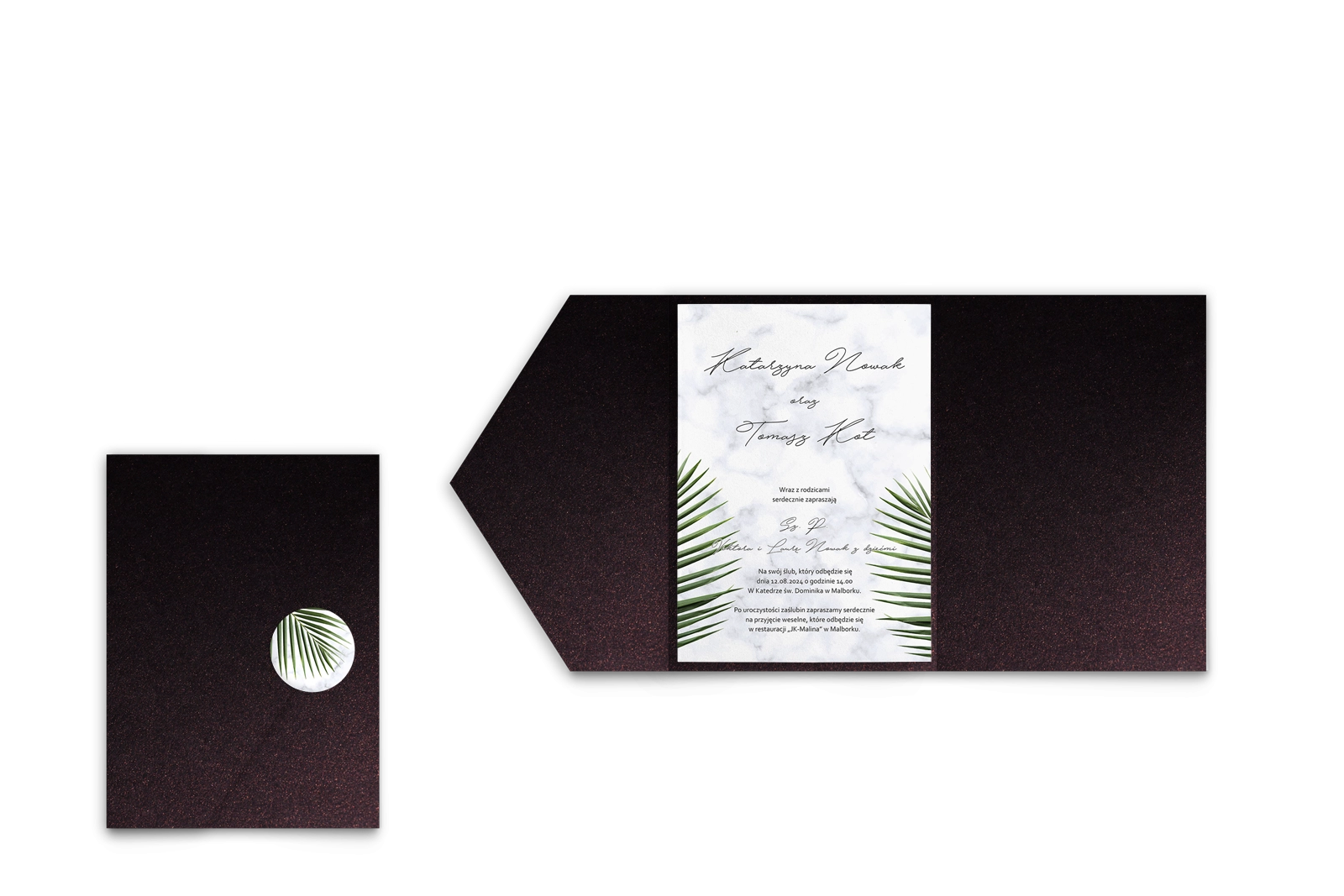 Zaproszenia ślubne w etui Marble leaf - motyw 1