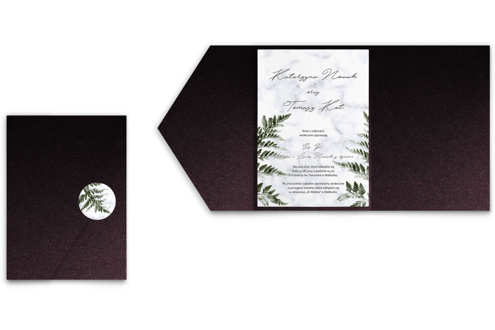 Zaproszenia ślubne w etui Marble leaf - motyw 2