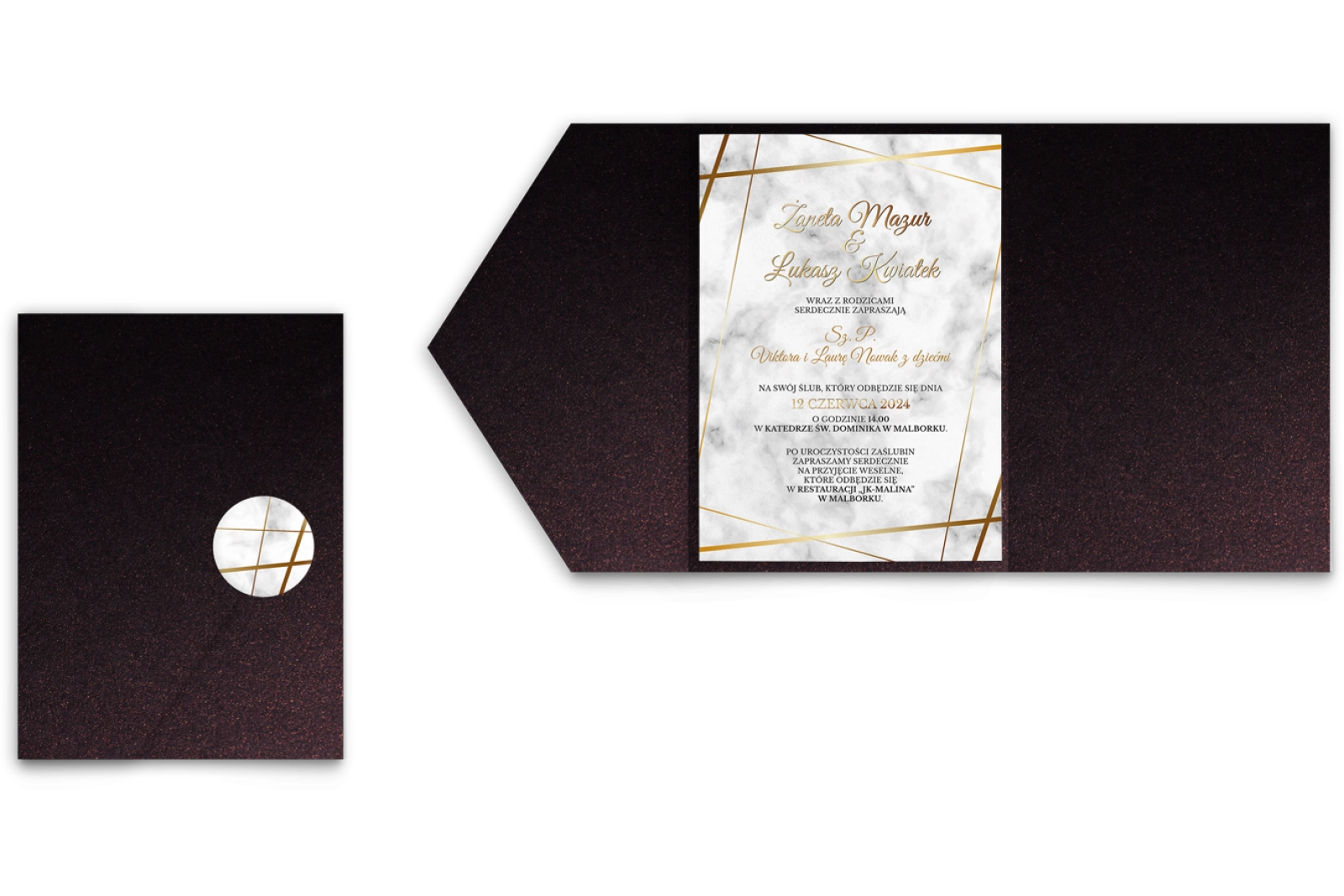 Zaproszenia ślubne w etui Marmur i złoto - motyw 2