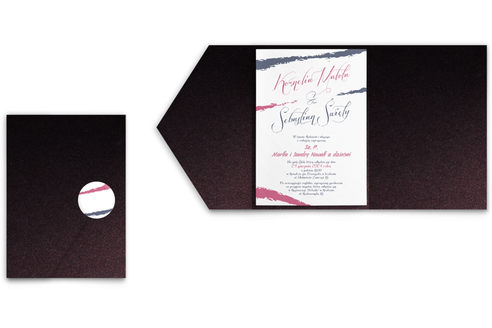 Wszystkie treści zaproszenia oraz dodatkowych wkładek są dowolnie personalizowane. Możesz zmienić każdą treść na swoim zaproszeniu. Podczas wypełniania Formularza Personalizacji opisz nam jak chcesz, aby wyglądało Twoje zaproszenie. Grafik przygotuje projekt skrojony specjalnie dla Ciebie.