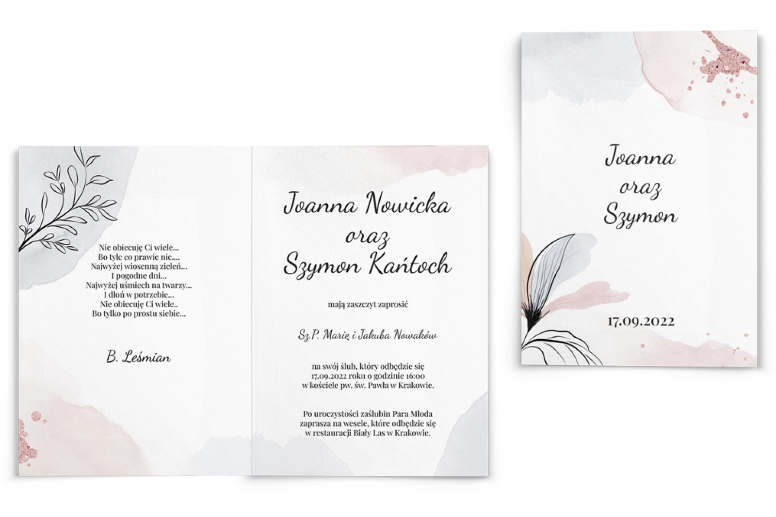 Zaproszenia ślubne Watercolor Wedding - Składane motyw 2