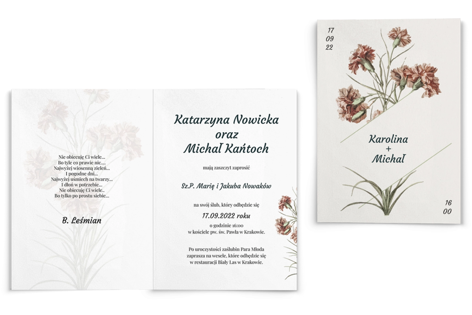 Wszystkie treści zaproszenia oraz dodatkowych wkładek są dowolnie personalizowane. Możesz zmienić każdą treść na swoim zaproszeniu. Podczas wypełniania Formularza Personalizacji opisz nam jak chcesz, aby wyglądało Twoje zaproszenie. Grafik przygotuje projekt skrojony specjalnie dla Ciebie.