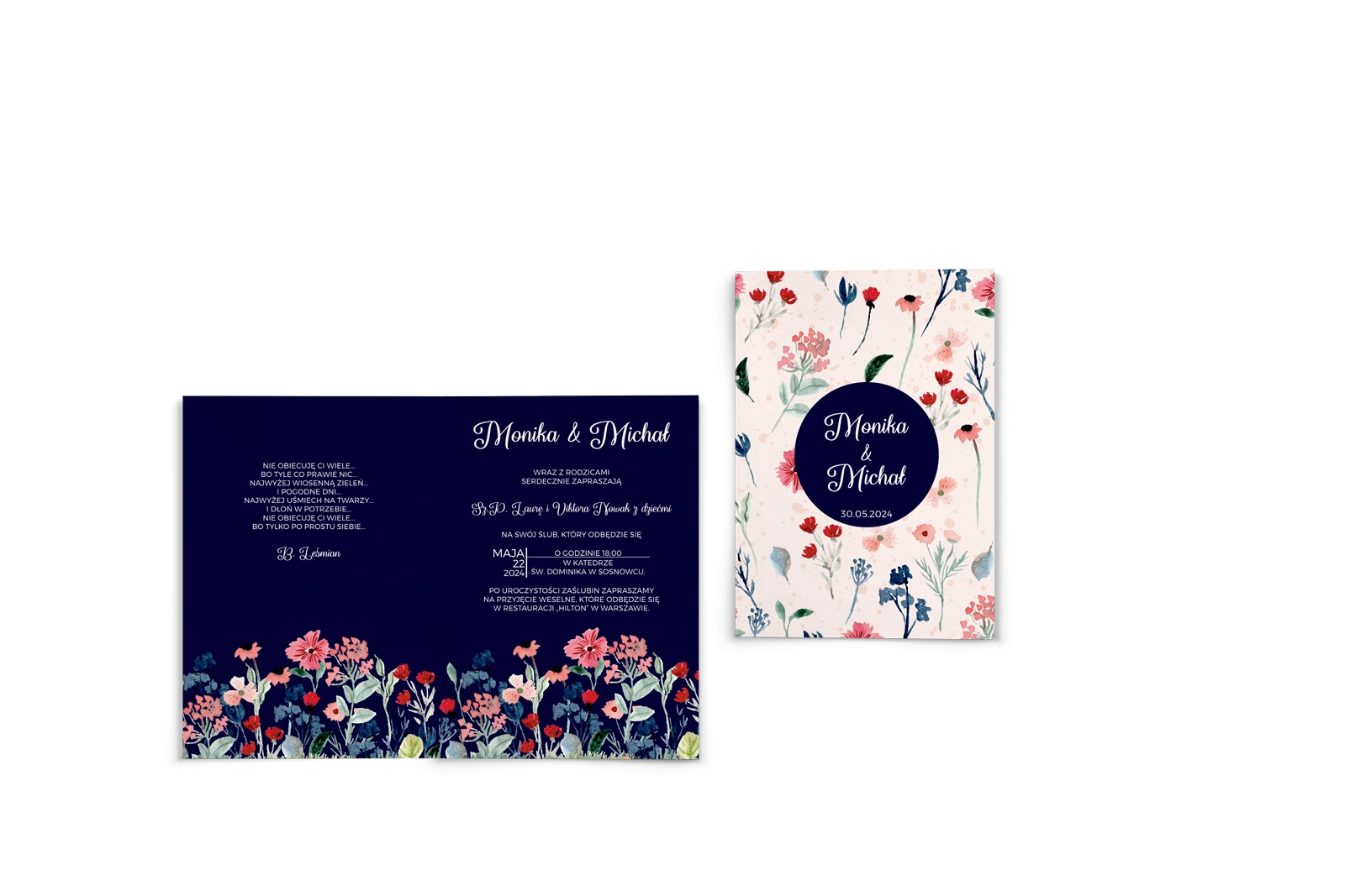 Wszystkie treści zaproszenia oraz dodatkowych wkładek są dowolnie personalizowane. Możesz zmienić każdą treść na swoim zaproszeniu. Podczas wypełniania Formularza Personalizacji opisz nam jak chcesz, aby wyglądało Twoje zaproszenie. Grafik przygotuje projekt skrojony specjalnie dla Ciebie.