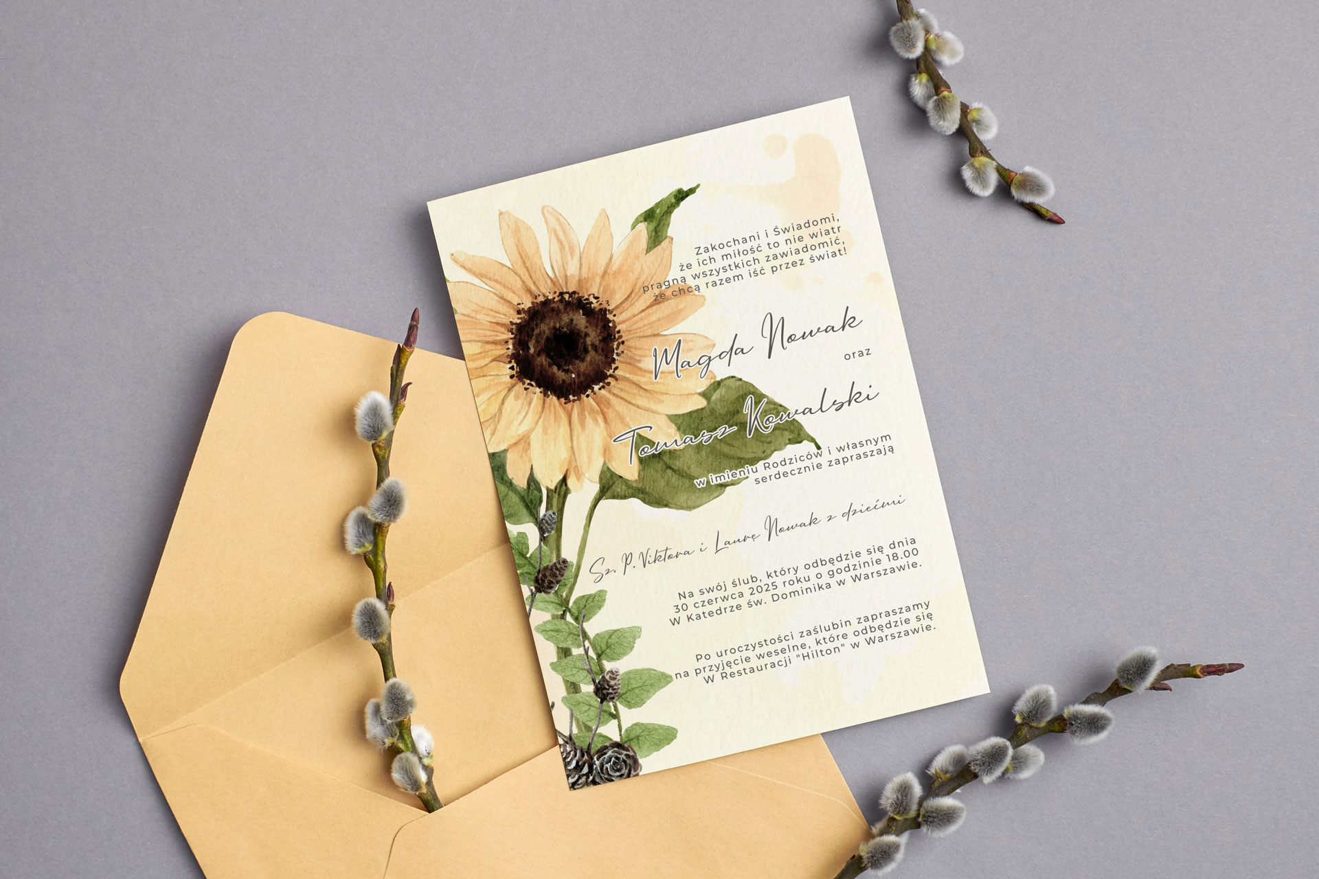 Wszystkie treści zaproszenia oraz dodatkowych wkładek są dowolnie personalizowane. Możesz zmienić każdą treść na swoim zaproszeniu. Podczas wypełniania Formularza Personalizacji opisz nam jak chcesz, aby wyglądało Twoje zaproszenie. Grafik przygotuje projekt skrojony specjalnie dla Ciebie.