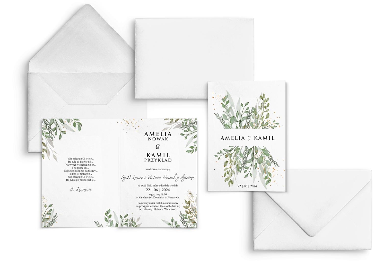 Zaproszenia ślubne Leaves - Składane Motyw 3