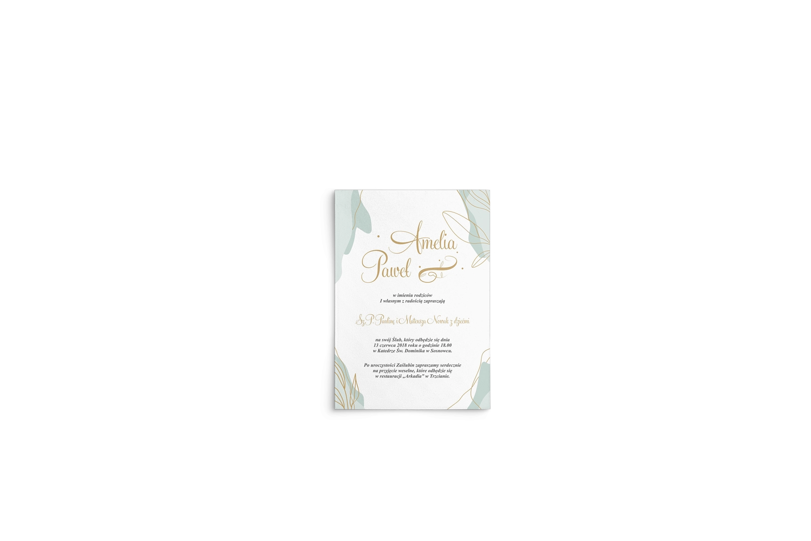 | Typ zaproszenia | Na kartach - Pionowe - Nierozkładane |