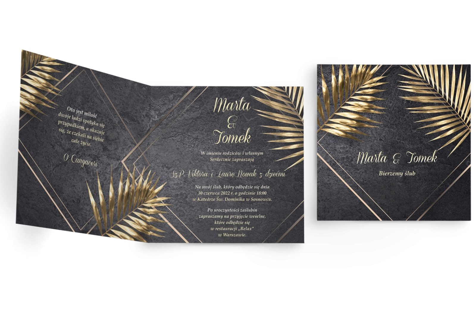 Zaproszenia ślubne Złote kwiaty - Składane Kwadrat Motyw 1