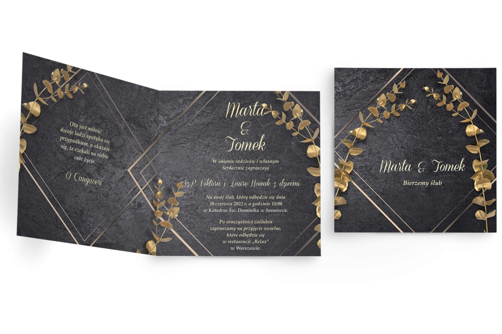 Zaproszenia ślubne Złote kwiaty - Składane Kwadrat Motyw 2
