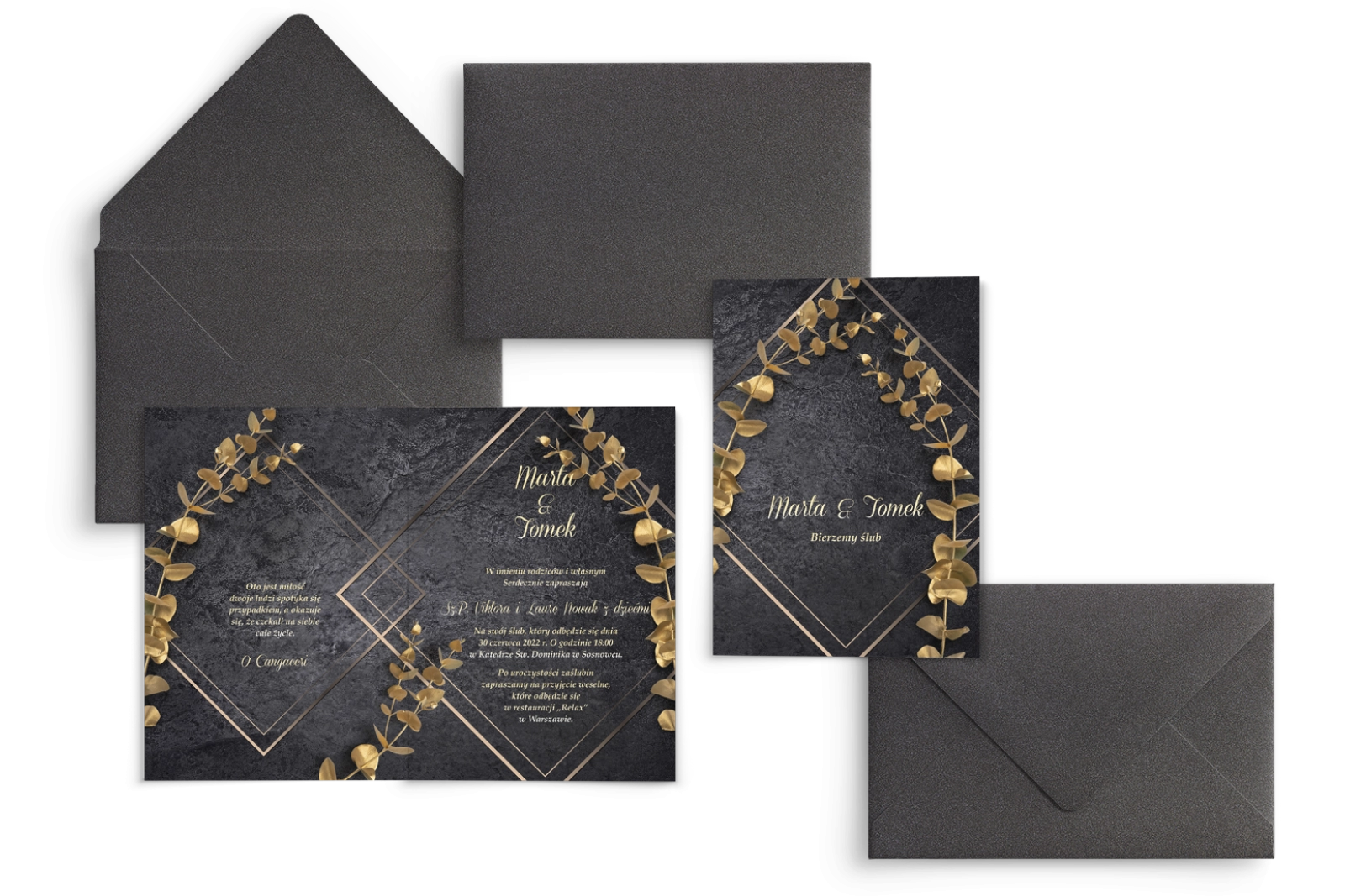 Wszystkie treści zaproszenia oraz dodatkowych wkładek są dowolnie personalizowane. Możesz zmienić każdą treść na swoim zaproszeniu. Podczas wypełniania Formularza Personalizacji opisz nam jak chcesz, aby wyglądało Twoje zaproszenie. Grafik przygotuje projekt skrojony specjalnie dla Ciebie.
