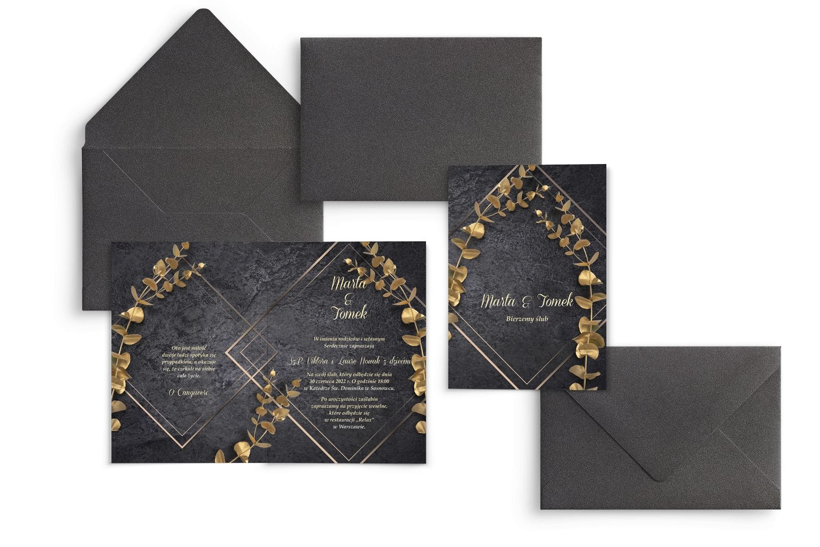Zaproszenia ślubne Złote Kwiaty - Składane Motyw 2