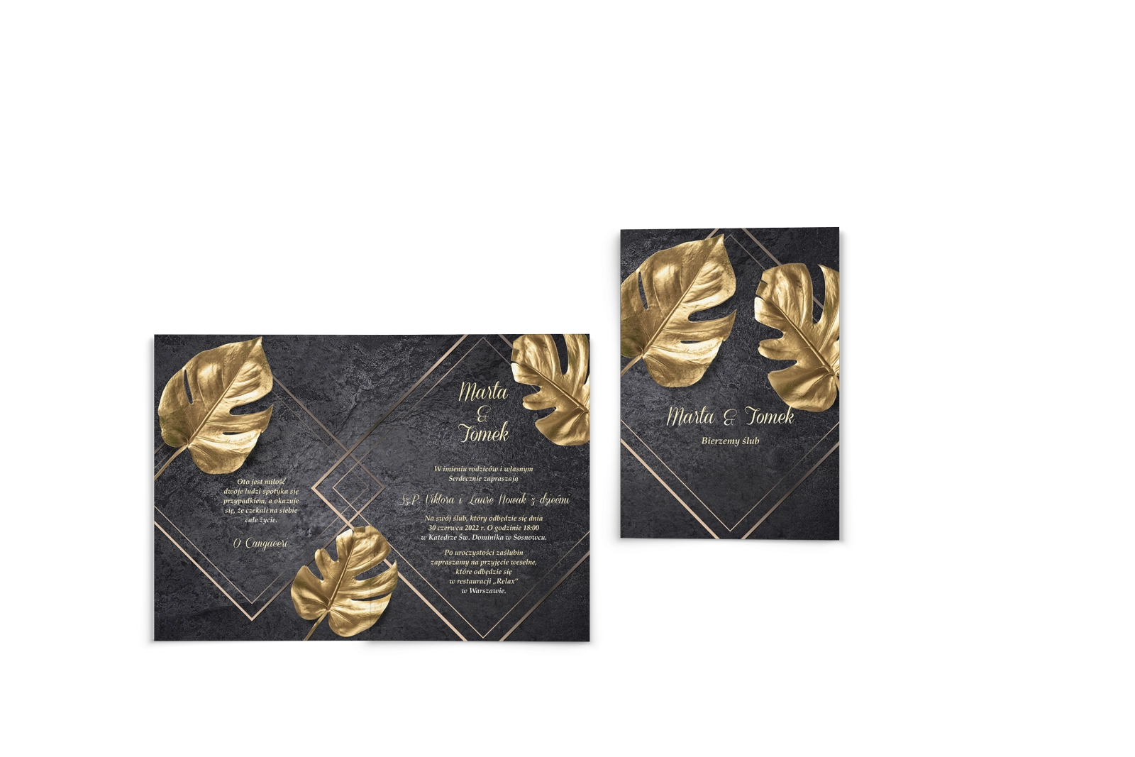 Wszystkie treści zaproszenia oraz dodatkowych wkładek są dowolnie personalizowane. Możesz zmienić każdą treść na swoim zaproszeniu. Podczas wypełniania Formularza Personalizacji opisz nam jak chcesz, aby wyglądało Twoje zaproszenie. Grafik przygotuje projekt skrojony specjalnie dla Ciebie.