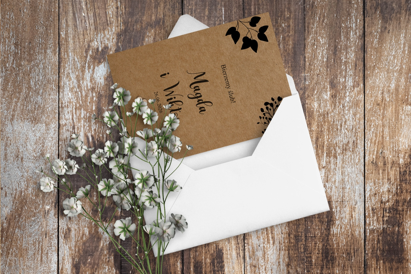 Wszystkie treści zaproszenia oraz dodatkowych wkładek są dowolnie personalizowane. Możesz zmienić każdą treść na swoim zaproszeniu. Podczas wypełniania Formularza Personalizacji opisz nam jak chcesz, aby wyglądało Twoje zaproszenie. Grafik przygotuje projekt skrojony specjalnie dla Ciebie.