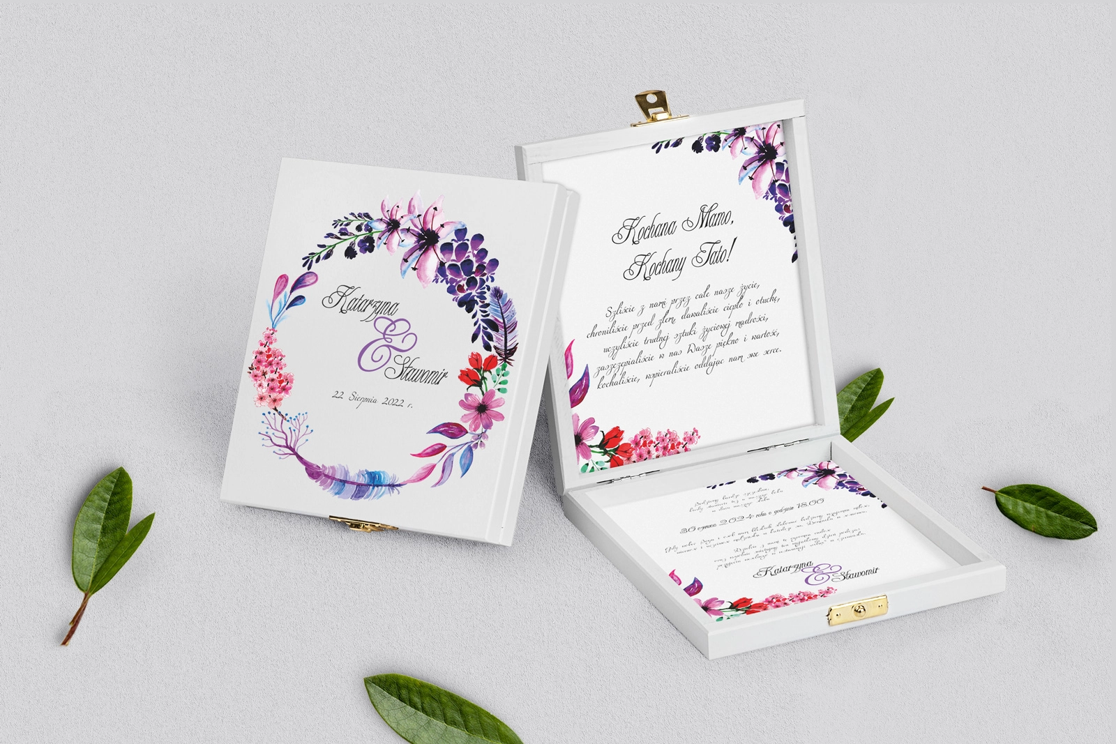Zaproszenie dla Rodziców - białe Akwarelowe Wianki Motyw 7