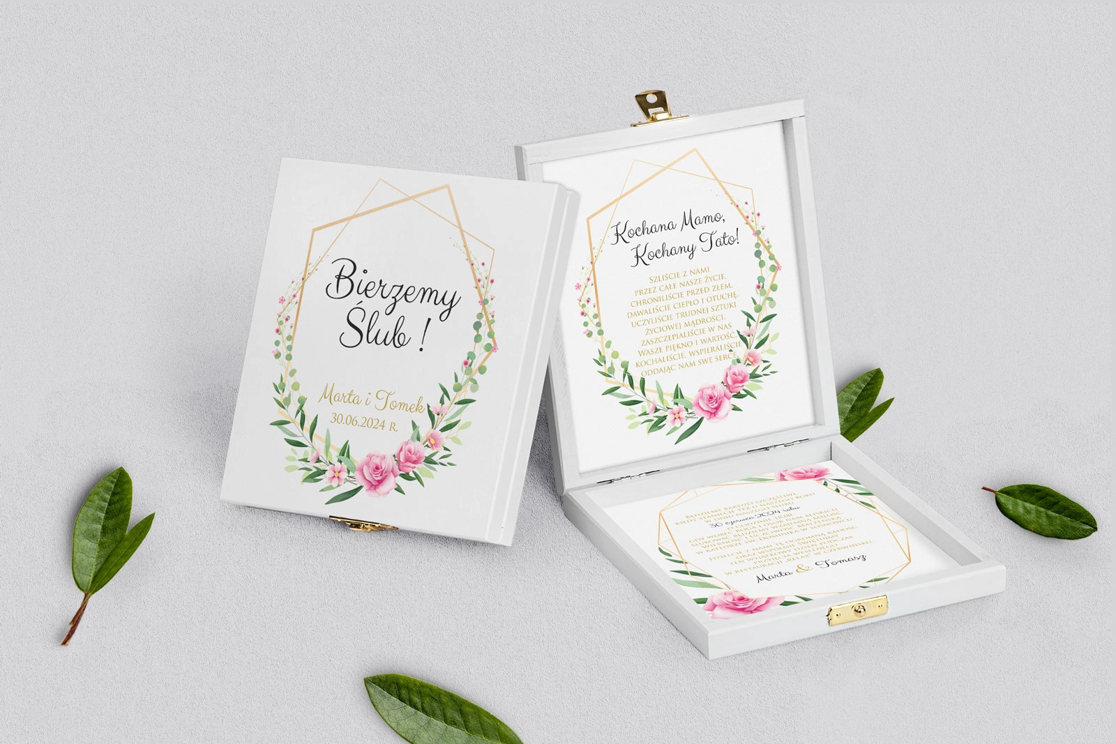 Zaproszenie dla Rodziców - białe Flowers & Frame Motyw 4