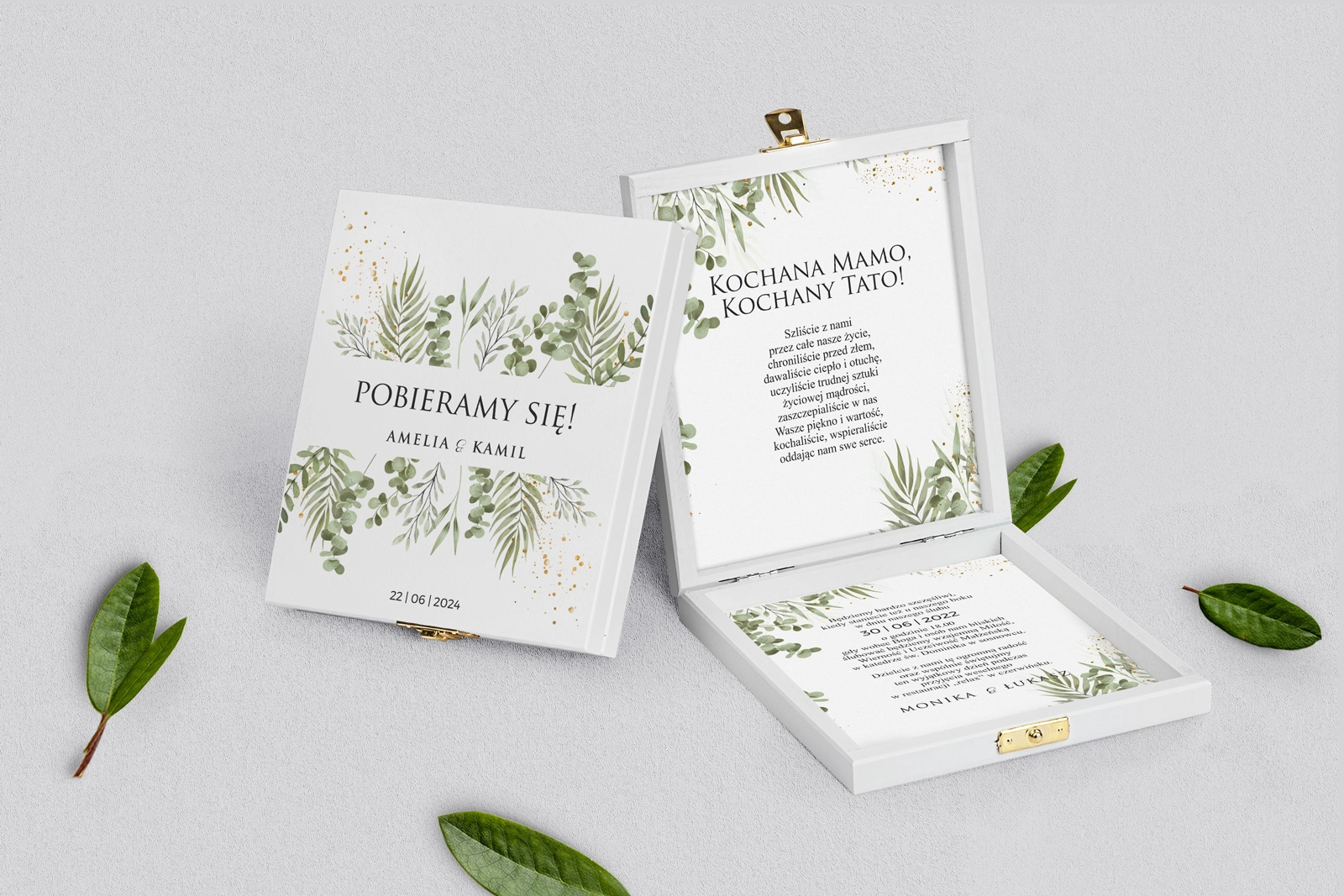 Zaproszenie dla Rodziców - białe Leaves Motyw 2