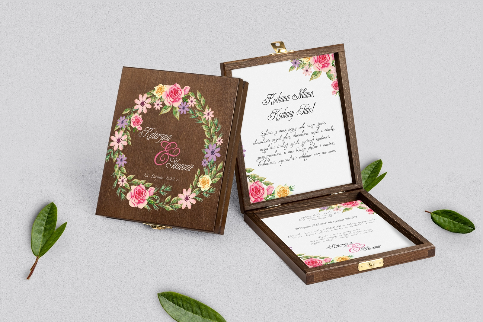 Zaproszenie dla Rodziców - brązowe Akwarelowe Wianki Motyw 5