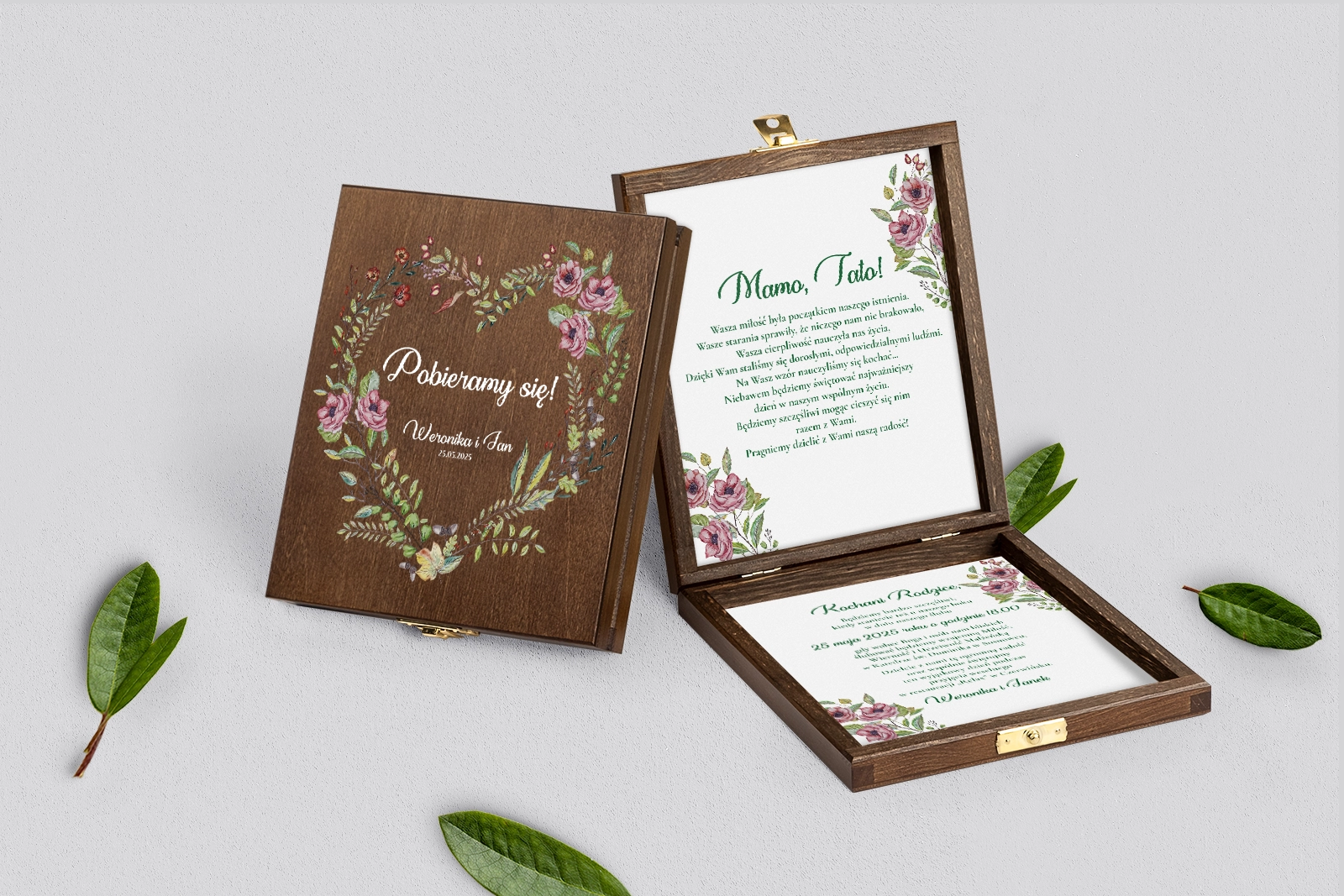Zaproszenie dla Rodziców - brązowe Heart of Flowers Motyw 3