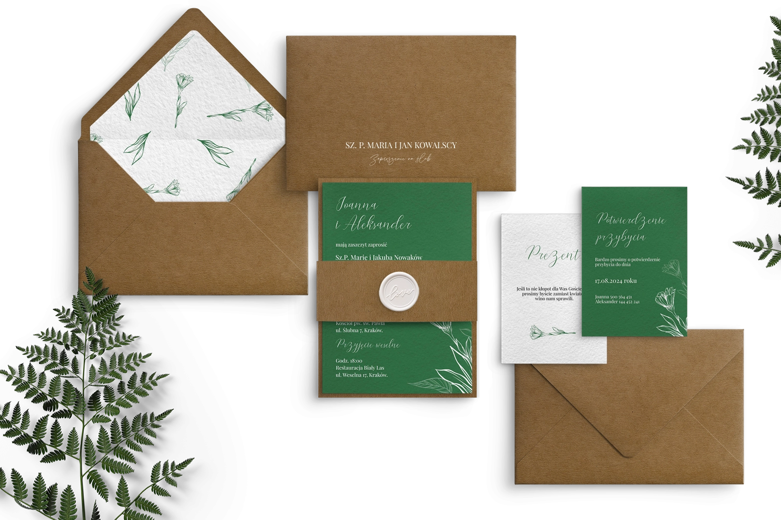 Zaproszenie Paper drukowane na papierze satynowym z pięknymi dodatkami ekologicznymi i lakiem w kolorze białym