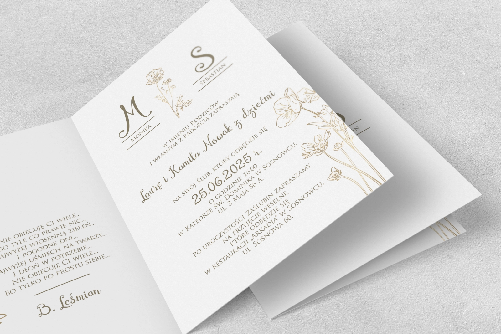 Zaproszenia ślubne Fiori - Składane Motyw 2