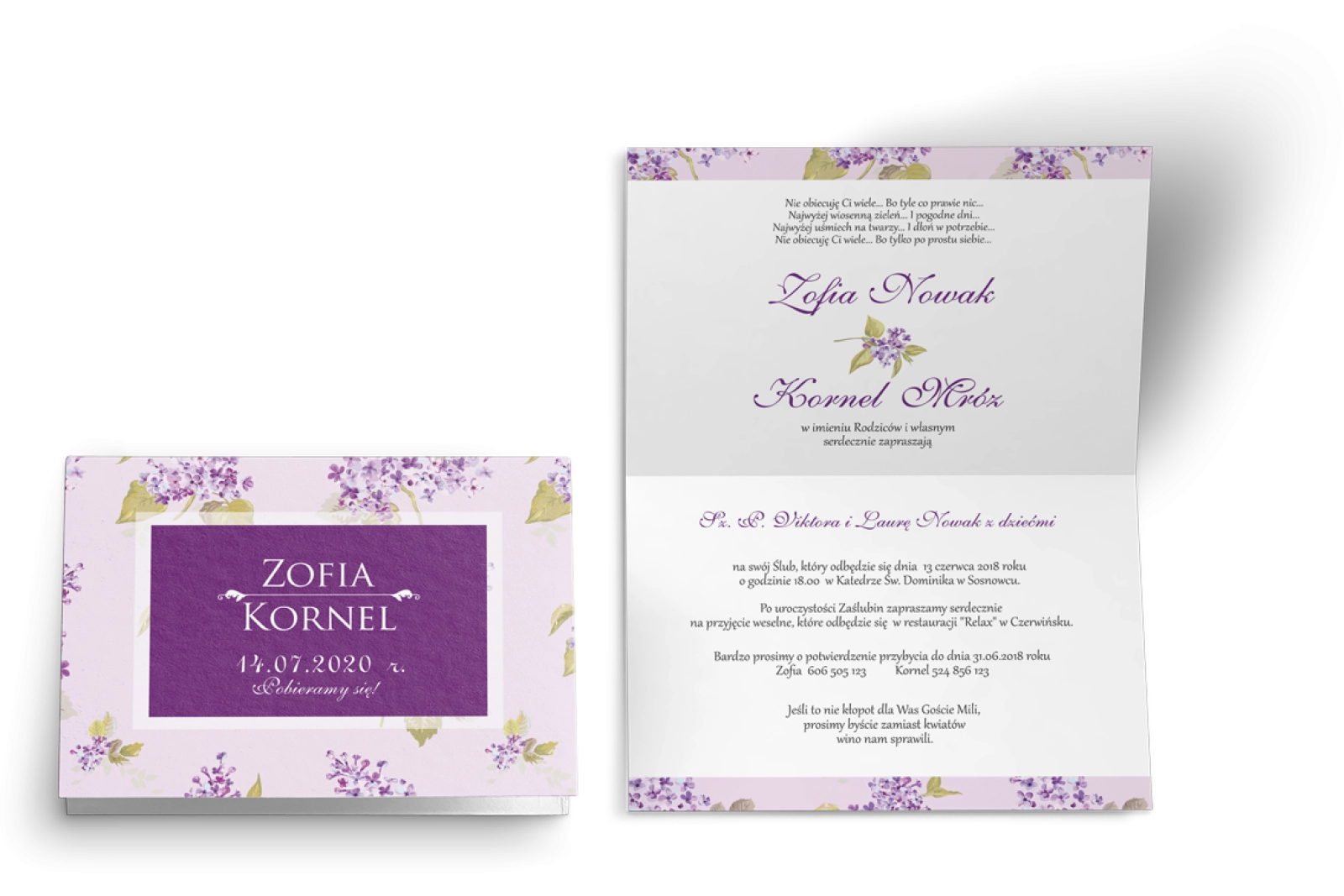 Wszystkie treści zaproszenia oraz dodatkowych wkładek są dowolnie personalizowane. Możesz zmienić każdą treść na swoim zaproszeniu. Podczas wypełniania Formularza Personalizacji opisz nam jak chcesz, aby wyglądało Twoje zaproszenie. Grafik przygotuje projekt skrojony specjalnie dla Ciebie.