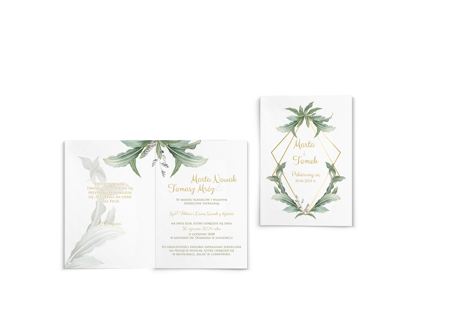 Zaproszenia ślubne Liście - Składane Motyw 1