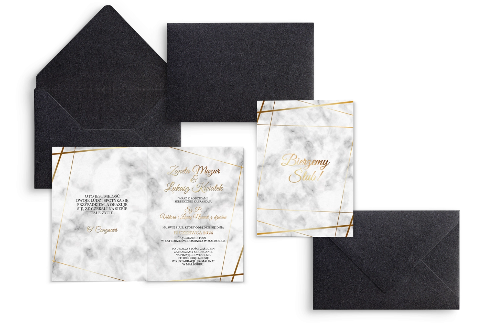 Zaproszenia ślubne Marmur & Złoto - Składane Motyw 2