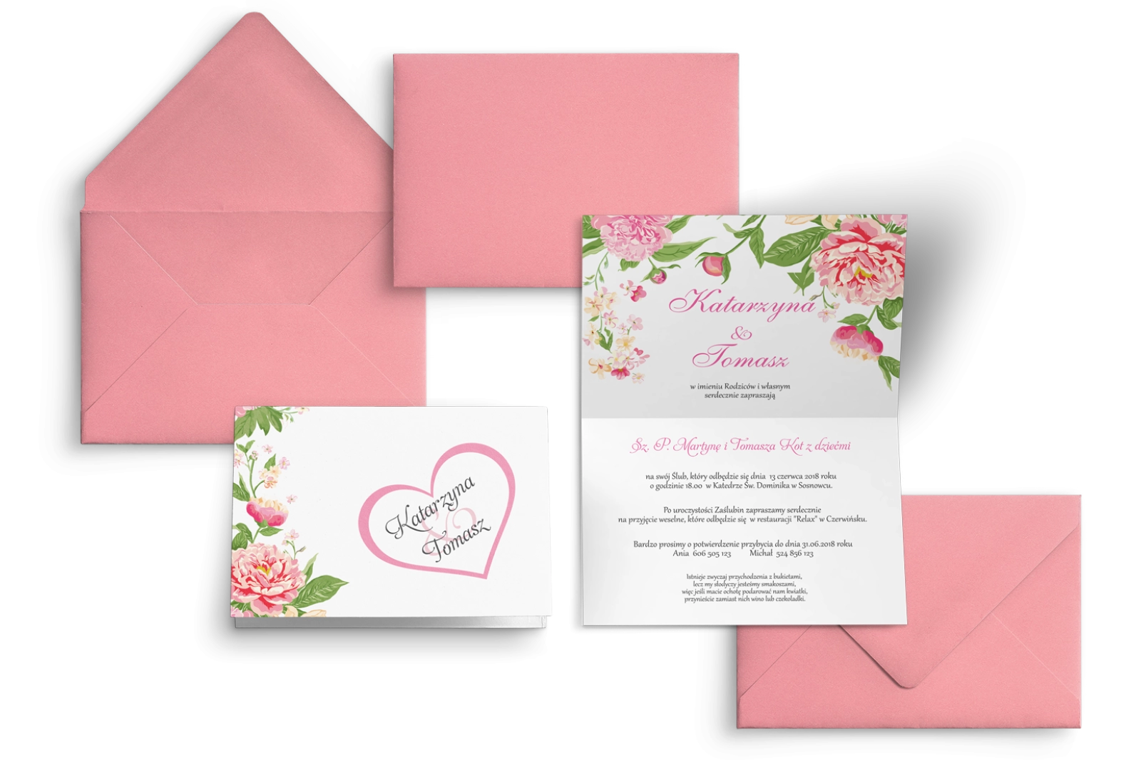 Zaproszenie ślubne Serca Kwiat - Motyw 1