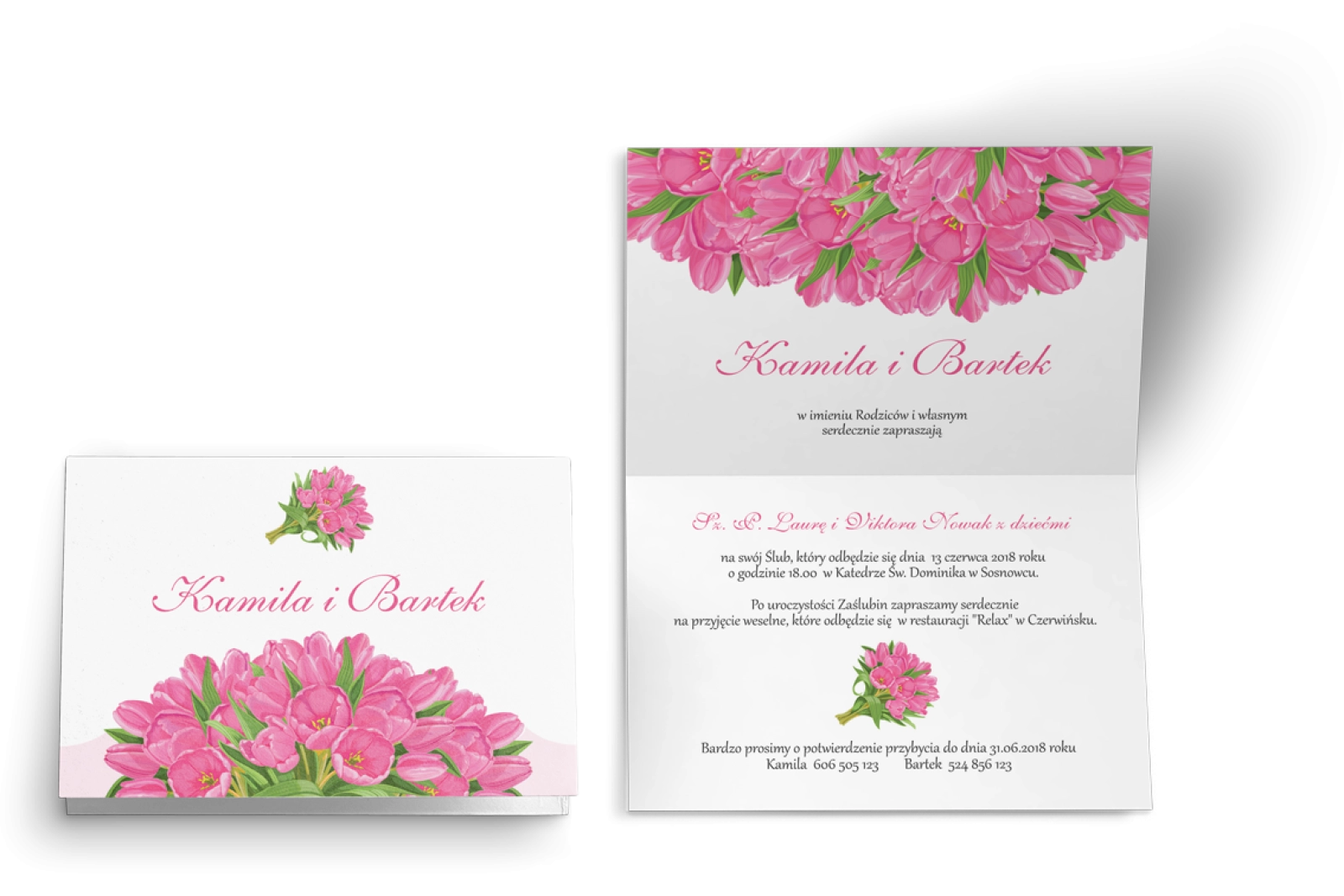 Wszystkie treści zaproszenia oraz dodatkowych wkładek są dowolnie personalizowane. Możesz zmienić każdą treść na swoim zaproszeniu. Podczas wypełniania Formularza Personalizacji opisz nam jak chcesz, aby wyglądało Twoje zaproszenie. Grafik przygotuje projekt skrojony specjalnie dla Ciebie.