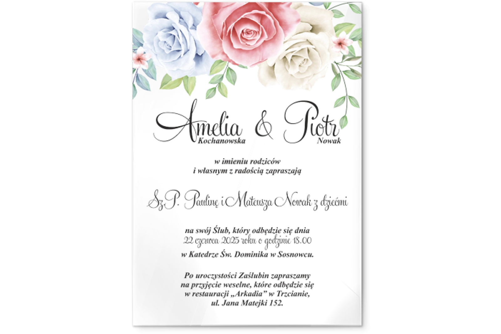 | Rozmiar zaproszenia | 148x105 mm (+- 2mm) |