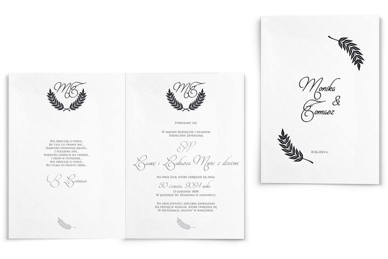 Wszystkie treści zaproszenia oraz dodatkowych wkładek są dowolnie personalizowane. Możesz zmienić każdą treść na swoim zaproszeniu. Podczas wypełniania Formularza Personalizacji opisz nam jak chcesz, aby wyglądało Twoje zaproszenie. Grafik przygotuje projekt skrojony specjalnie dla Ciebie.