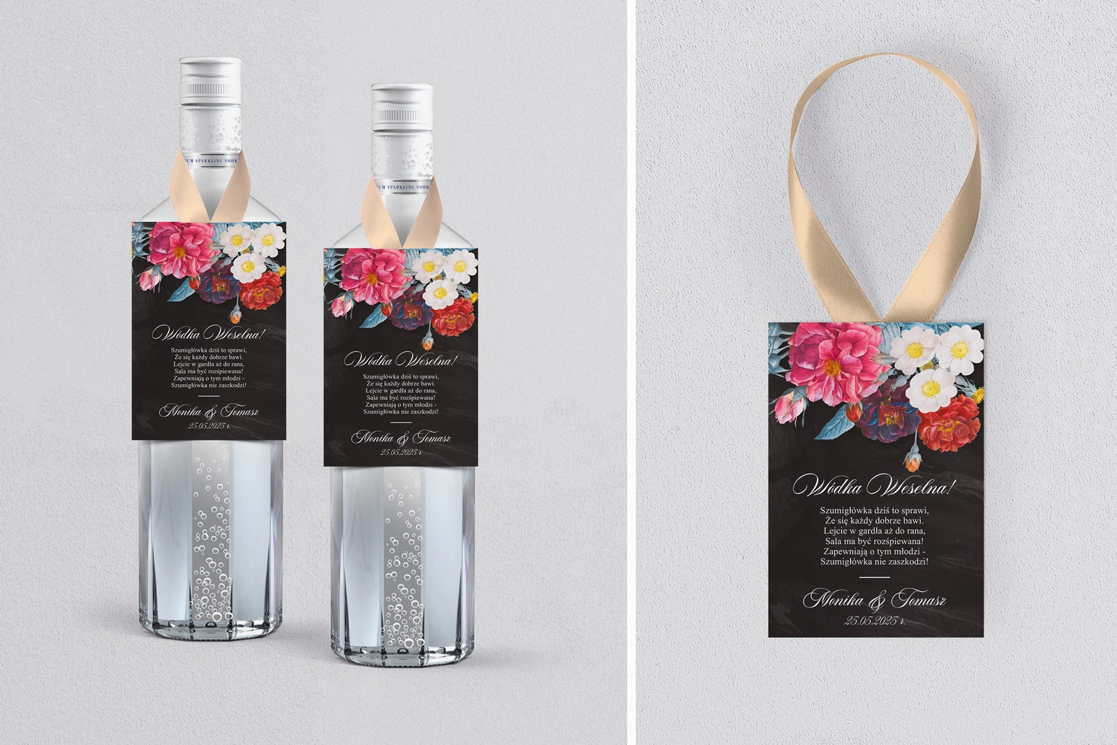 Na tej karcie produktu kupujesz Zawieszki na alkohol w konfiguracji określonej w specyfikacji. Nasze zawieszki są drukowane przy użyciu wysokiej jakości drukarki produkcyjnej, która zapewnia mocne, nasycone kolory oraz czytelny wyrazisty tekst.