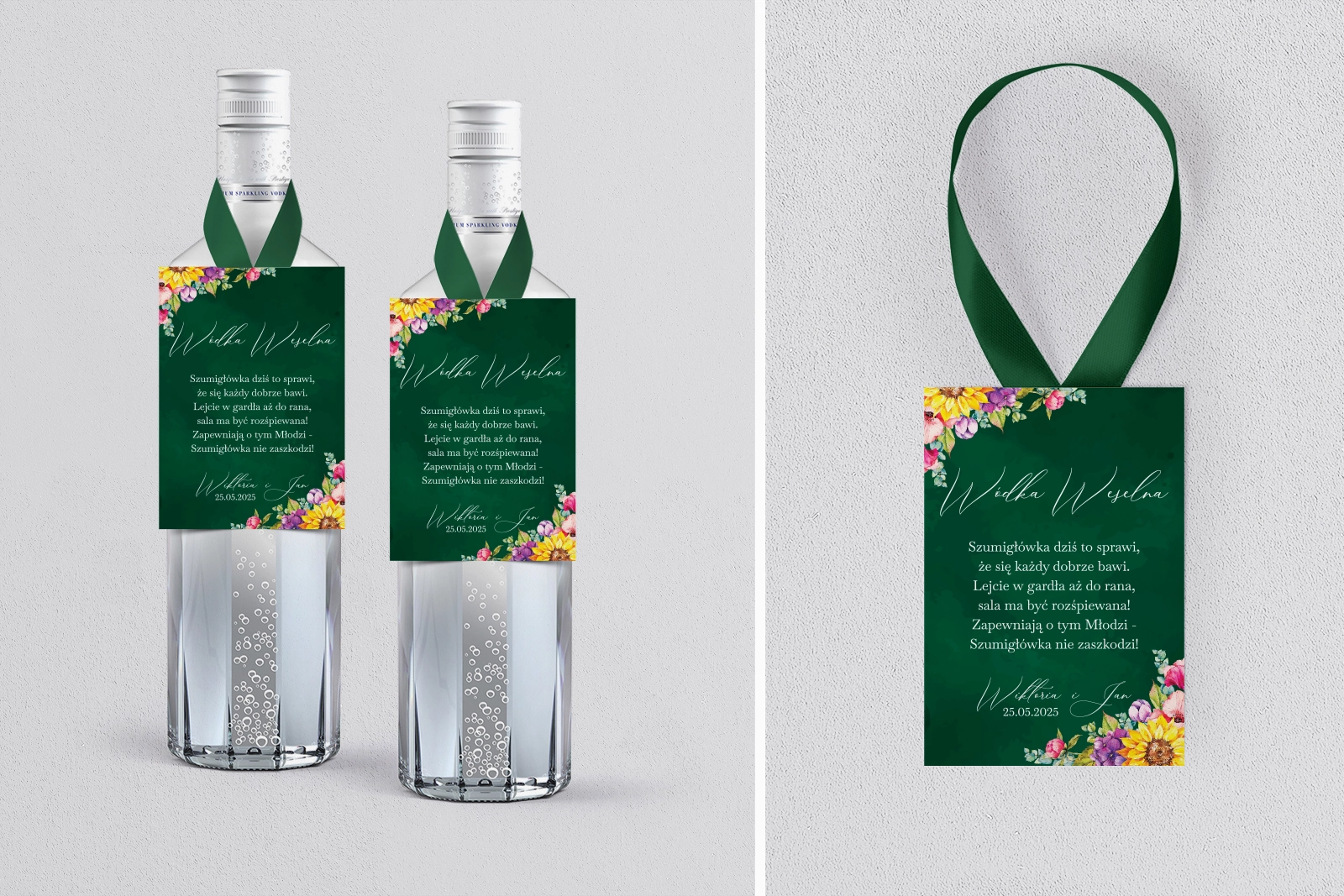 Na tej karcie produktu kupujesz Zawieszki na alkohol w konfiguracji określonej w specyfikacji. Nasze zawieszki  są drukowane przy użyciu wysokiej jakości drukarki produkcyjnej, która zapewnia mocne, nasycone kolory oraz czytelny wyrazisty tekst.