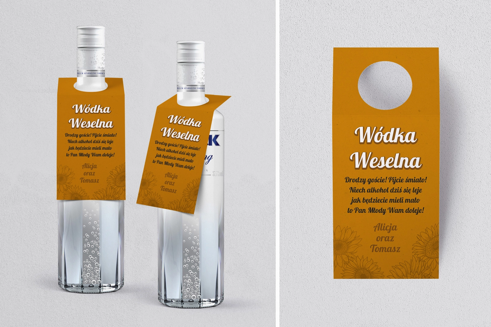 Na tej karcie produktu kupujesz Zawieszki na alkohol w konfiguracji określonej w specyfikacji. Nasze zawieszki  są drukowane przy użyciu wysokiej jakości drukarki produkcyjnej, która zapewnia mocne, nasycone kolory oraz czytelny wyrazisty tekst.