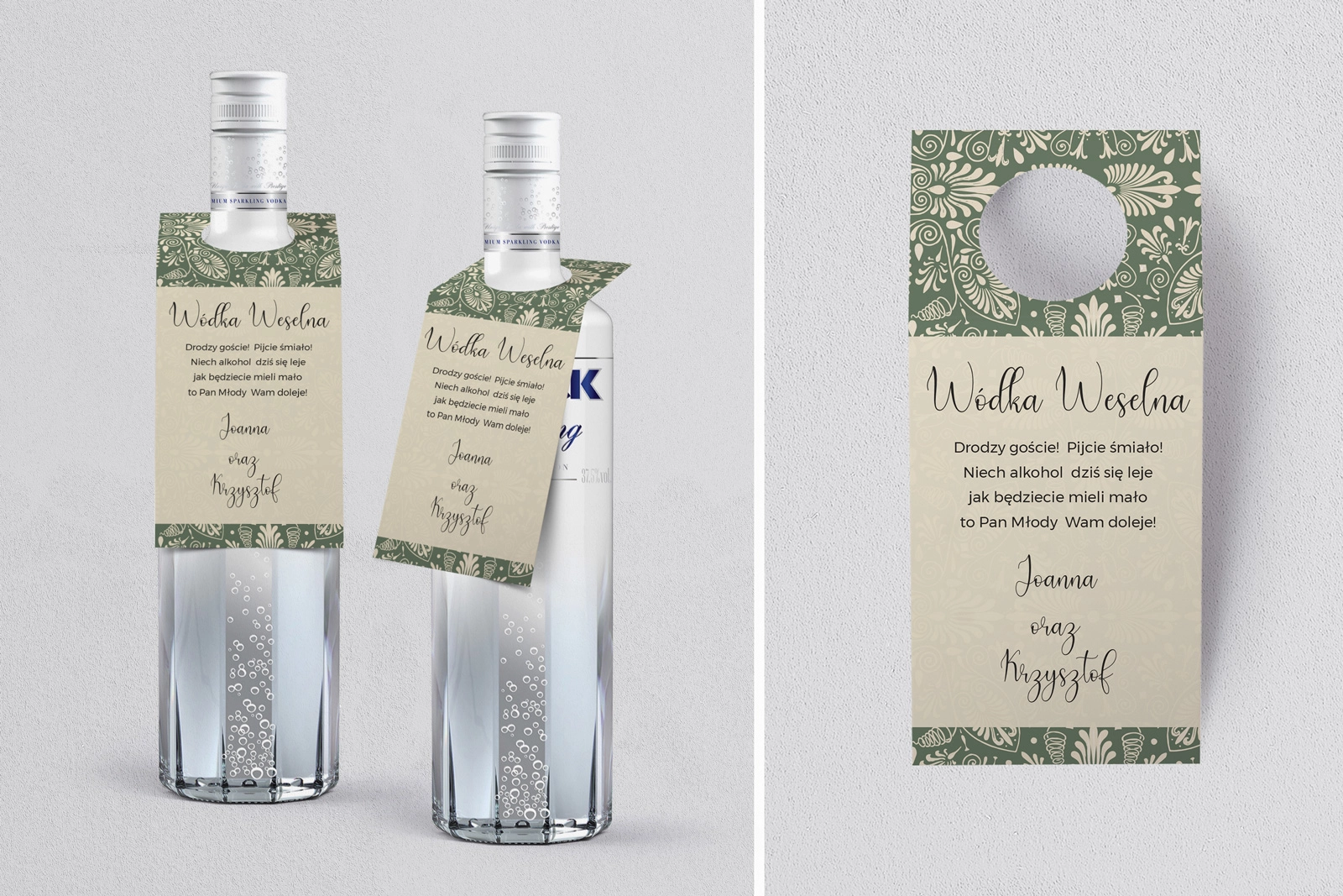 Na tej karcie produktu kupujesz Zawieszki na alkohol w konfiguracji określonej w specyfikacji. Nasze zawieszki  są drukowane przy użyciu wysokiej jakości drukarki produkcyjnej, która zapewnia mocne, nasycone kolory oraz czytelny wyrazisty tekst.