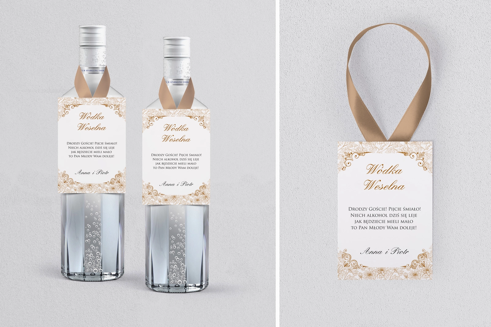 Na tej karcie produktu kupujesz Zawieszki na alkohol w konfiguracji określonej w specyfikacji. Nasze zawieszki  są drukowane przy użyciu wysokiej jakości drukarki produkcyjnej, która zapewnia mocne, nasycone kolory oraz czytelny wyrazisty tekst.
