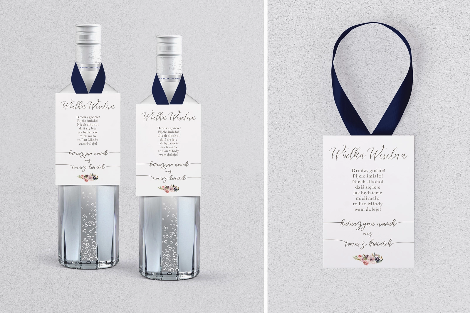 Na tej karcie produktu kupujesz Zawieszki na alkohol w konfiguracji określonej w specyfikacji. Nasze zawieszki  są drukowane przy użyciu wysokiej jakości drukarki produkcyjnej, która zapewnia mocne, nasycone kolory oraz czytelny wyrazisty tekst.