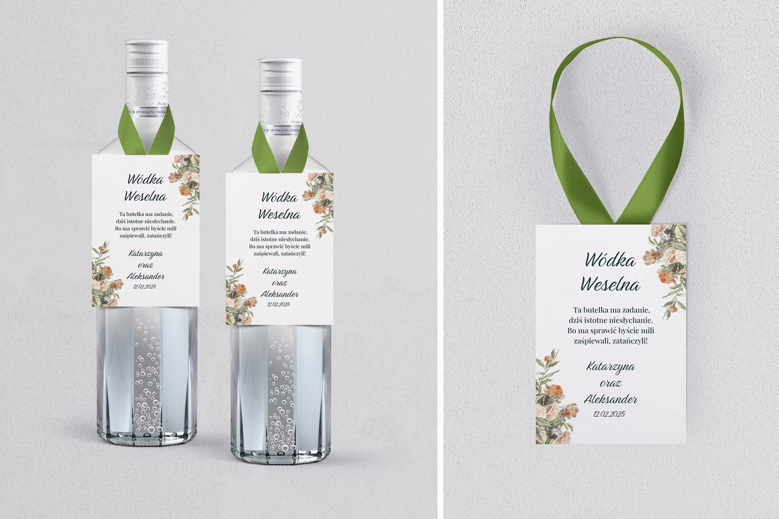 Na tej karcie produktu kupujesz Zawieszki na alkohol w konfiguracji określonej w specyfikacji. Nasze zawieszki  są drukowane przy użyciu wysokiej jakości drukarki produkcyjnej, która zapewnia mocne, nasycone kolory oraz czytelny wyrazisty tekst.