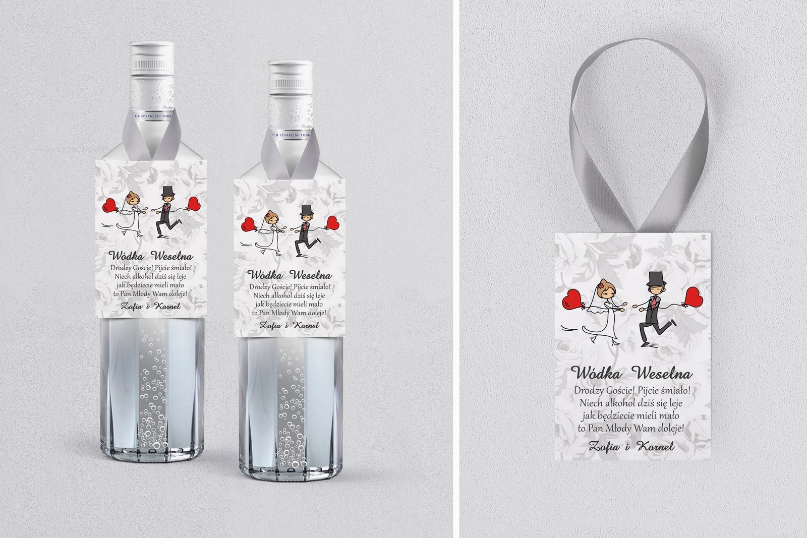 Na tej karcie produktu kupujesz Zawieszki na alkohol w konfiguracji określonej w specyfikacji. Nasze zawieszki  są drukowane przy użyciu wysokiej jakości drukarki produkcyjnej, która zapewnia mocne, nasycone kolory oraz czytelny wyrazisty tekst.
