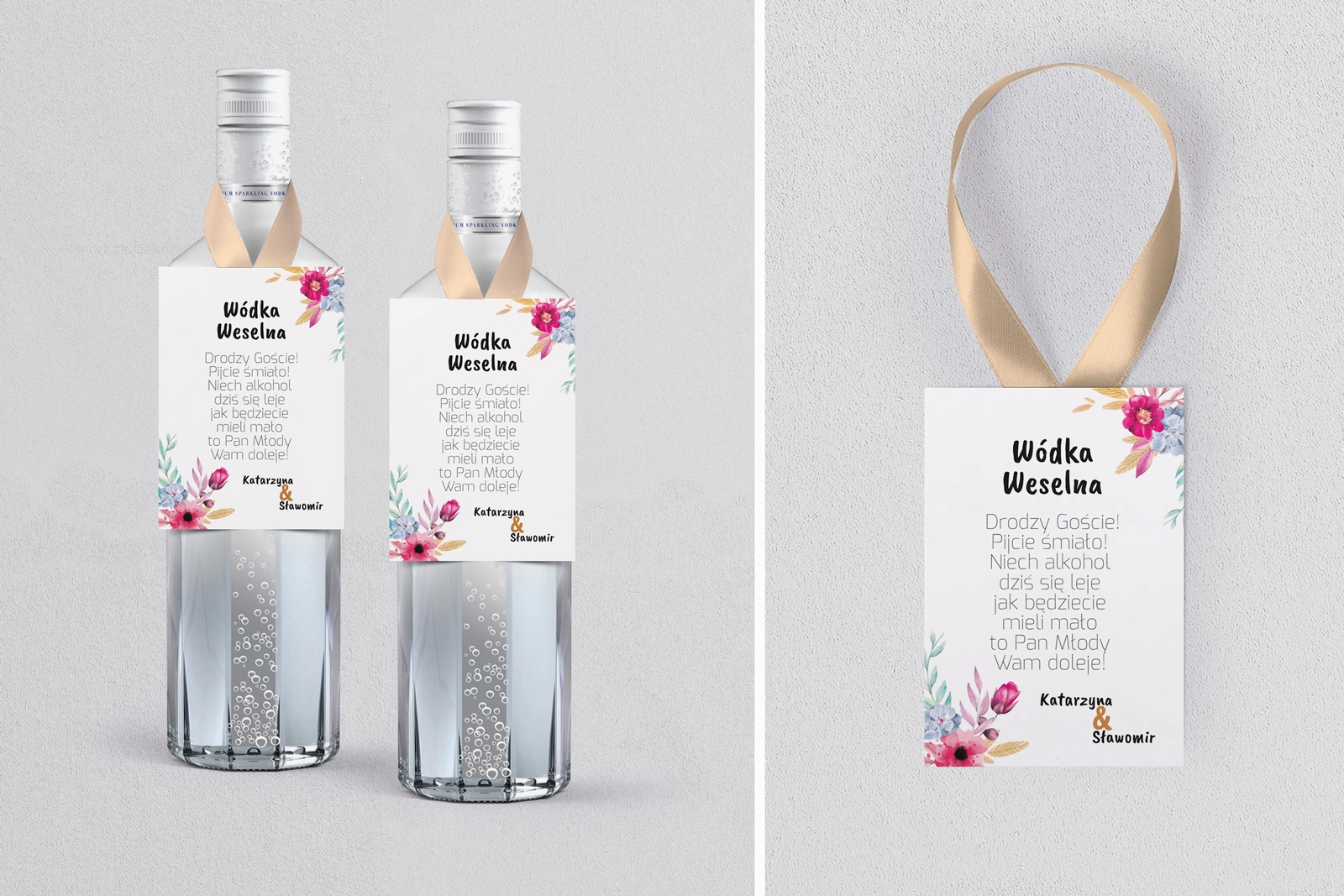 Na tej karcie produktu kupujesz Zawieszki na alkohol w konfiguracji określonej w specyfikacji. Nasze zawieszki  są drukowane przy użyciu wysokiej jakości drukarki produkcyjnej, która zapewnia mocne, nasycone kolory oraz czytelny wyrazisty tekst.